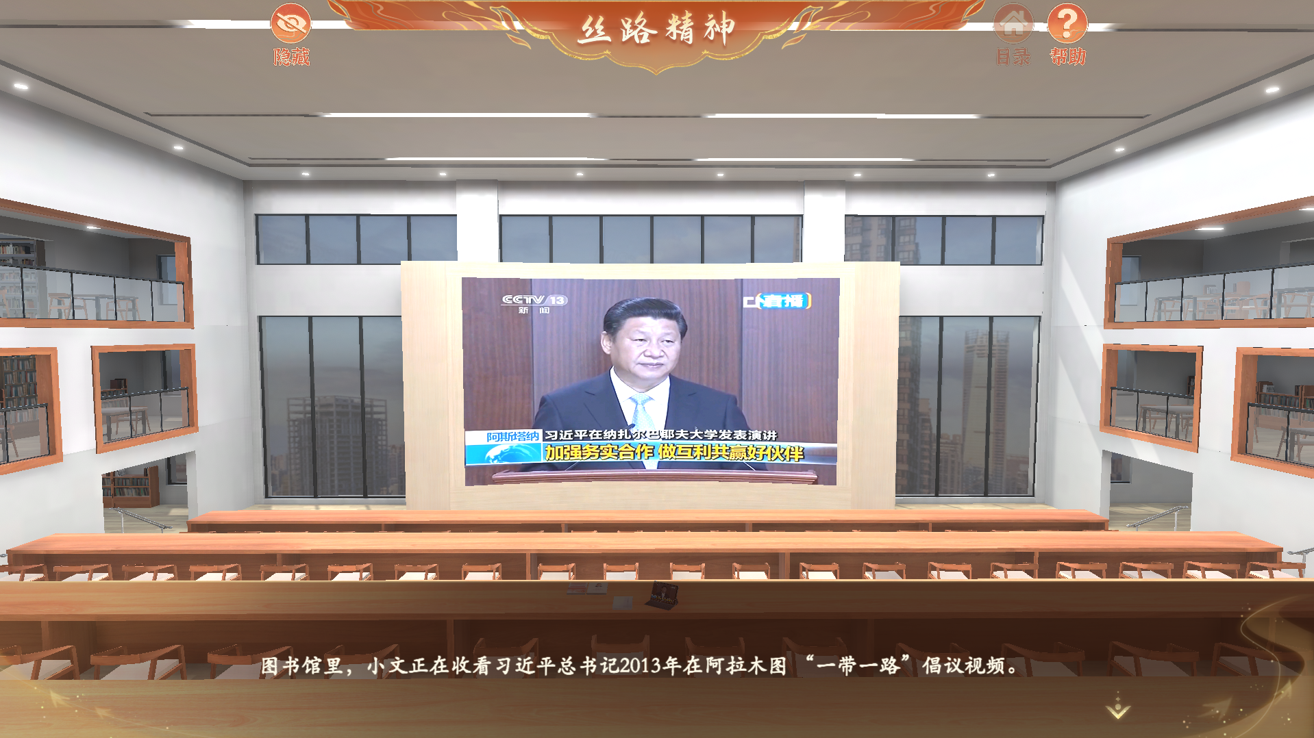 “一带一路”联通中外、沟通世界,为构建人类命运共同体做出了重大贡献。为深刻了解“一带一路”及“丝路精神”的核心内容,本实验课程结合虚拟仿真技术赋能,将沉浸式体验与立德树人思政功能相结合,在古今丝绸之路之变的历史脉络中,通过多样文化体验、游戏和互动等元素,使学生生动了解“一带一路“所体现的中国智慧、中国精神。